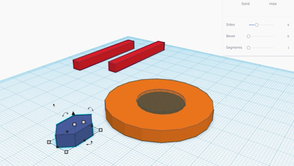 Tvary jsou stavební bloky aplikace Tinkercad. Podle potřeby můžete přidávat existující tvary nebo importovat své vlastní.