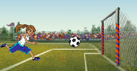 Tento projekt obsahuje postavu dívky, míč a pozadí s fotbalovou brankou. Dívka by měla přiběhnout k míči, poté uživatel stiskne klávesu mezerník a v ten okamžik by měl míč letět do branky. Následně by měla dívka jásat. Program ovšem tak nefunguje. Tvým úkolem je chyby najít a opravit.
