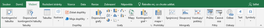 Karta Vložení je rozdělena na sekce Tabulky,
