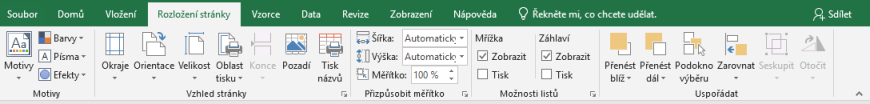 Uspořádat. Pomocí této karty nastavujeme vzhled listu a také