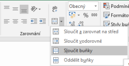 - Na kartě Domů ve skupině Zarovnání vybereme možnost Sloučit buňky (můžeme také vybrat možnost Sloučit a zarovnat na střed)