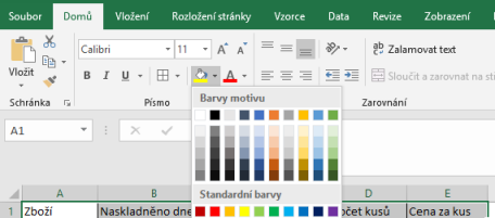 Výplň buňky nám umožňuje přidat buňkám barevné pozadí.