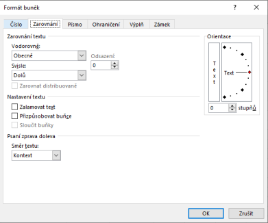 Zarovnání textu buňky