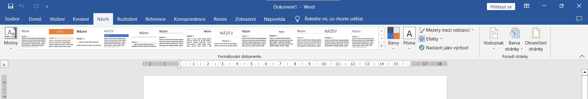 Na kartě Návrh si můžeš vybrat motiv, který se ti líbí nebo odpovídá požadavkům dokumentu. Styly už volíš na kartě Domů.