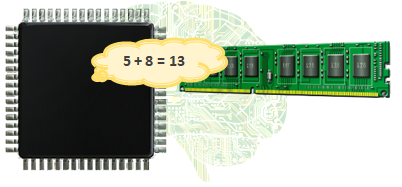 Počítač má čipy, zejména svůj procesor a svoji operační paměť. Procesor vykonává operace. To, s čím právě počítá, má v operační paměti.