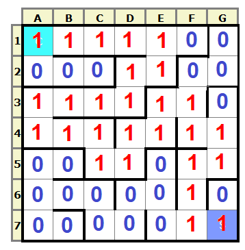 Anebo můžeme použít kódování čísly. Správnou cestu značíme číslem 1, ostatní políčka mají číslo 0.