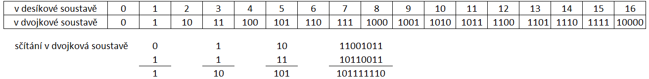 - Ve dvojkové (binární) soustavě zapiš a sečti (pod sebou):