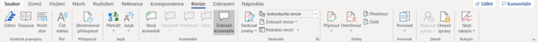 Pokud potřebuješ zkontrolovat chyby a pravopis, určitě se ti bude hodit karta Revize. Také zde můžeš překládat text nebo přidávat komentáře.