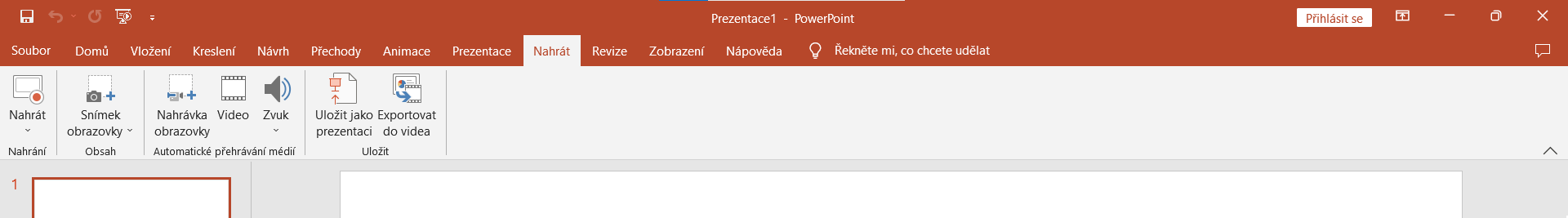 Do prezentace můžeš vkládat i videa a zvuky na kartě Nahrát.
