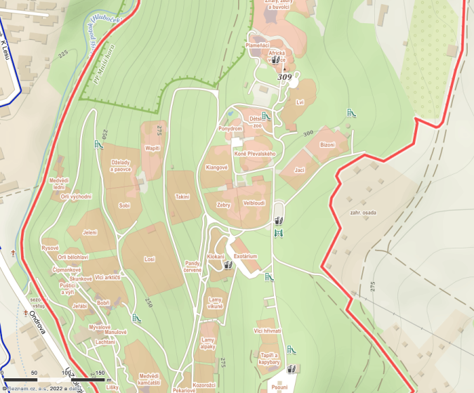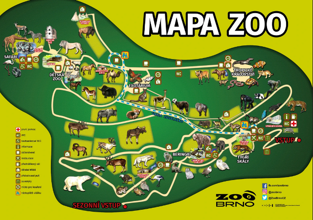 Před sebou máš plánek zoologické zahrady. Jsou tam vyznačené cesty, přibližné umístění zvířat a dalších atrakcí.