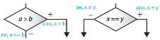 - podmínka nesplněna... pokračuje větví NE (–, no);