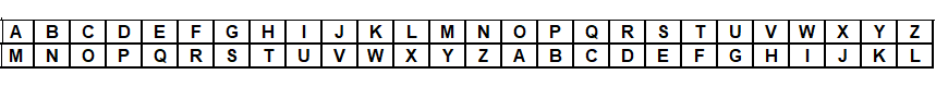 Při šifrování se hledá ve spodní řádce a do šifry se píše z horní řádky. Při luštění se v horní řádce hledá písmeno v šifře a v dolní je písmeno ze zprávy. Pro A = M vypadá tabulka takto :
