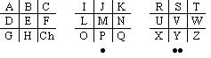 se dvě písmena - CH a W. Souřadnice šifrovaného písmene se píšou jako zlomek,
