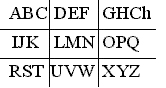 písmena, které jsou v jiné tabulce, ale na jiném místě píšeme doprostřed
