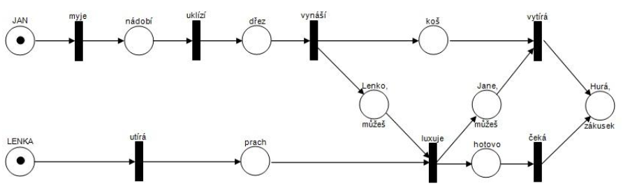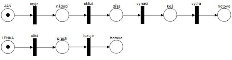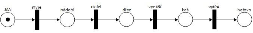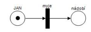 Místa (kroužky) budou popisovat, co je už uděláno, přechody (plné obdélníčky) jednotlivé činnosti.
