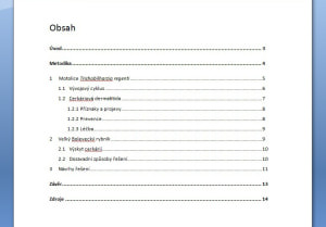 V delším dokumentu se špatně orientuje, je vhodné vytvořit obsah, očíslovat stránky, popsat obrázky, tabulky a grafy, sestavit jejich seznam.