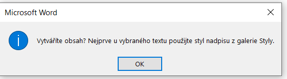 Obsah se vytvoří pouze tehdy, pokud máš v dokumentu definované styly.