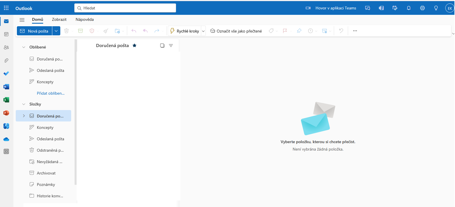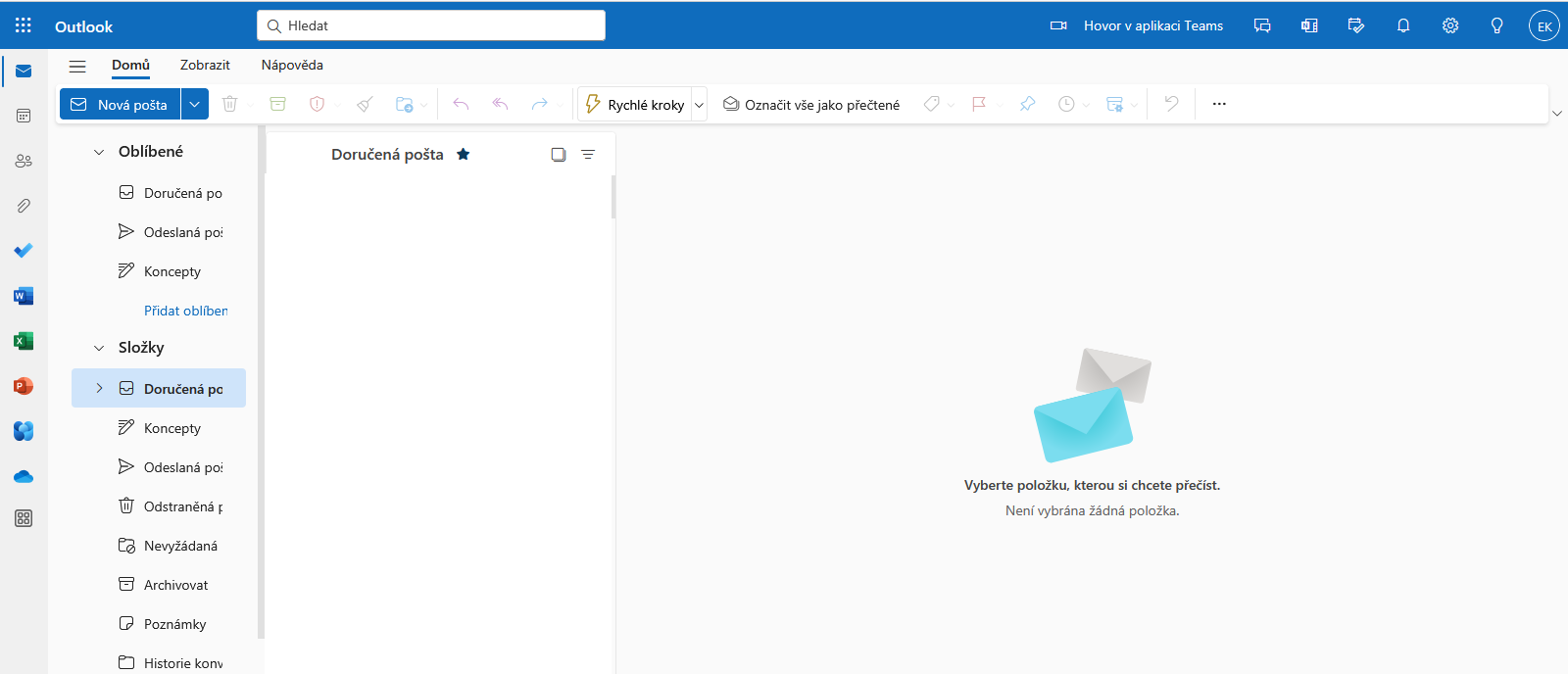 Vlevo najdeš seznam složek, kam se ti zprávy automaticky třídí. Ve složce "Doručené" najdeš všechny zprávy, které ti přišly a schránka je nevyhodnotila jako škodlivé. Ve složce "Odeslané" jsou všechny zprávy, které jsi poslal kamarádům, a ve složce "Rozepsané" zase najdeš ty zprávy, které jsi začal psát, ale z nejrůznějších důvodů neodeslal.