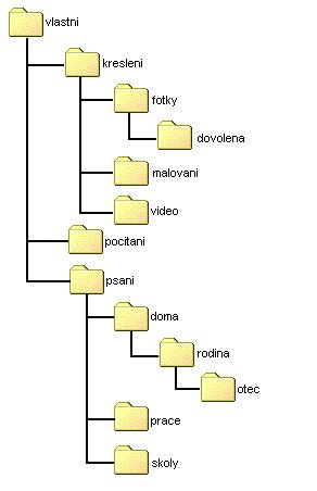 Musíme si ještě něco říct o stromové struktuře. Nemá to nic společného se stromy, ale mohlo by ti to vzdáleně připomínat rodokmen. Nebo třeba pokojíček plný skříní se spoustou přihrádek a šuplíků. V každé skříni (složce) může být spousta přihrádek (podsložek). V každé přihrádce může být několik šuplíků, v nich ještě krabičky a v každé krabičce mohou být uložené různé věci (soubory). V jedné třeba fotky z prázdnin, ve druhé dopisy od babičky, ve třetí CD s hudbou, kterou rád posloucháš atd. Vše má své místo a v počítači máš uklizeno. Stejně jako v pokojíku. Nebo snad ne?