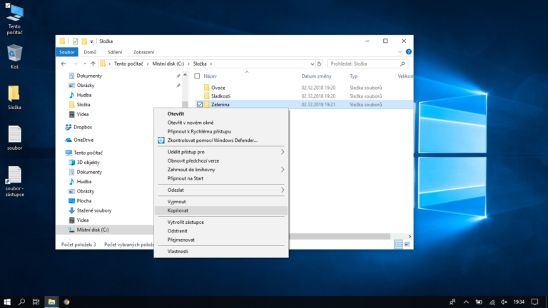 Pokud bys chtěl mít jistotu, že nespleteš tlačítka, můžeš na složku kliknout pravým tlačítkem myši a zvolit si možnost "Kopírovat".