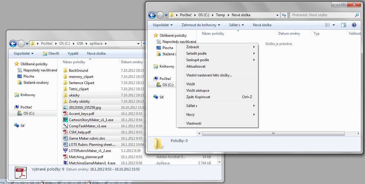 Poté si jen otevřeš místo, kam chceš složku zkopírovat, klikneš tam pravým tlačítkem myši a dáš možnost "Vložit".