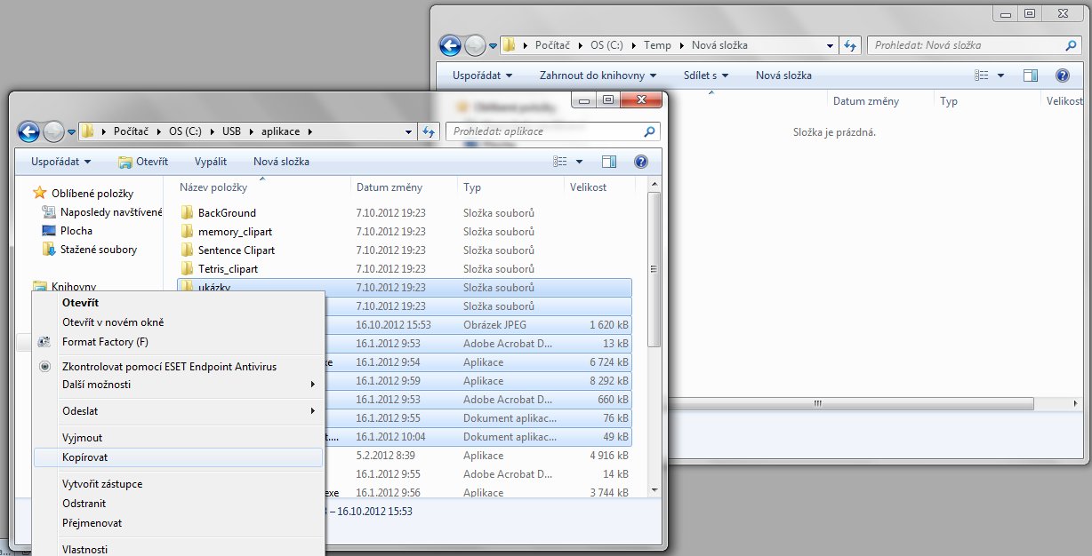 A pokud chceš být nejvíc cool, tak si složku jen označ levým tlačítkem myši a stiskni klávesovou kombinaci CTRL + C. Pak si otevřeš místo, kam chceš složku zkopírovat a stiskneš CTRL + V. Experti prostě umí používat klávesové zkratky!