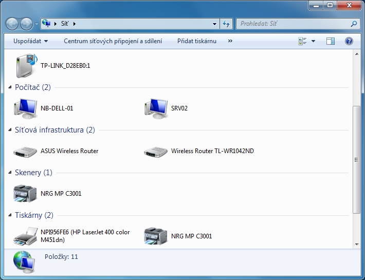 Síť zobrazí všechny síťová zařízení, servery, WIFI, tiskárny - síťové, scannery - síťové, počítače, notebooky, .....