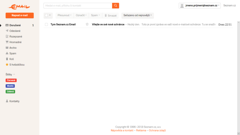 schránka přijala a nehodila do spamu. Je to krátké oznámení, které